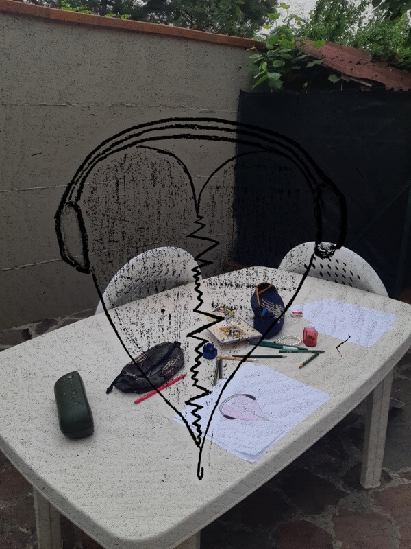 Le studentesse e gli studenti delle classi 2° AME e 2° APA dell’ISIS Valdarno di San Giovanni Valdarno hanno condiviso uno scorcio della propria intimità e della loro vita. Abbiamo chiesto loro di disegnare liberamente al ritmo del loro pezzo musicale preferito. L’immagine che fa da sfondo a ogni elaborato mostra la stanza in cui hanno realizzato il proprio schizzo ascoltando la propria musica. Alcuni di loro hanno condiviso con noi il risultato dell’esercizio svolto. La didascalia corrisponde al titolo del brano ascoltato durante l’esecuzione del disegno.