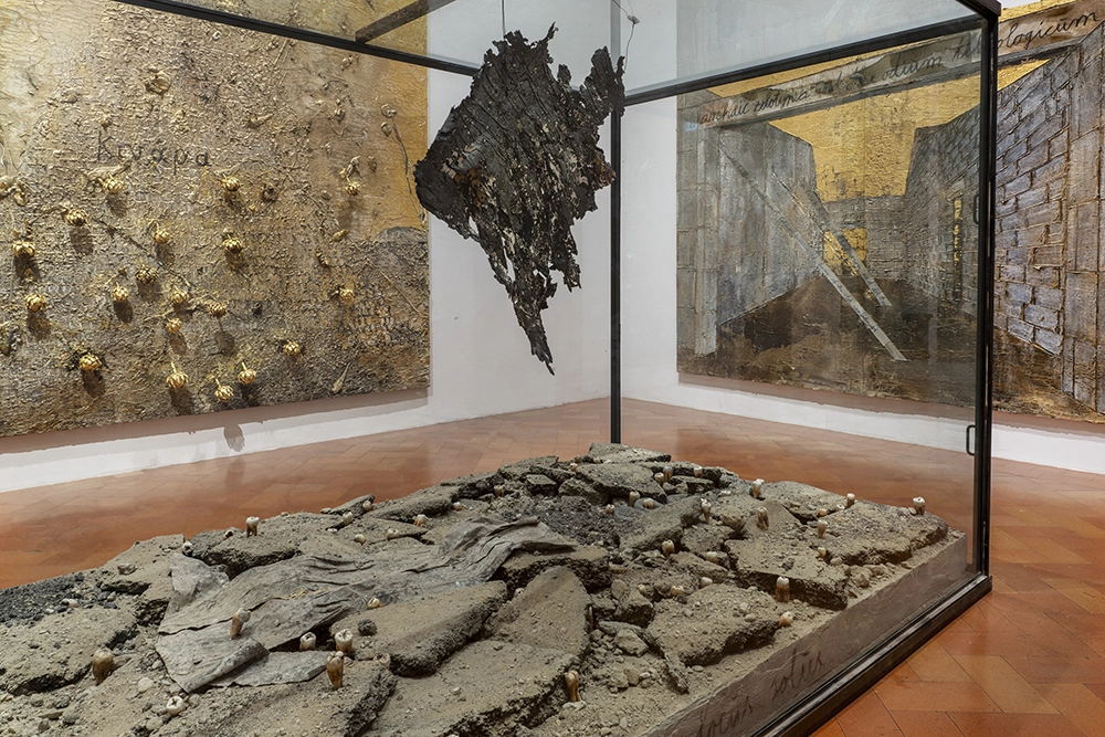 Il terzo elemento è la catastrofe, che forse è il tema più costante e segreto nella vita e nell’opera di Kiefer, cresciuto in una Germania fatta di rovine, che però lui legge retrospettivamente come possibilità: tutto è vago, tutto è friabile, tutto è possibile. Sono queste rovine, con la loro apertura, la loro gigantesca indeterminatezza, che alimentano una parte della poetica di Kiefer che in questo si fa carico di ciò che Karl Jaspers chiamò «la colpa tedesca». Qui trova risonanza un trauma non troppo nascosto, la nascita nel 1945, l’esperienza di città tedesche ridotte a filamenti e rovine: «Per me è la cosa più edificante in assoluto. Non riesco a distogliere lo sguardo. È così meraviglioso perché è l’inizio, dove tutto è possibile». Non la fine ma, appunto, un altro inizio, e le rovine sono per Kiefer «la cosa più bella che ci sia».