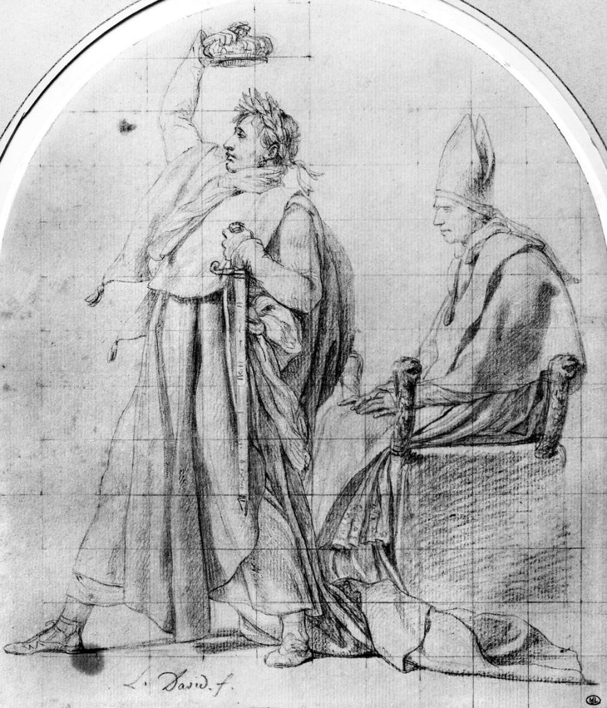 Born into a family of Italian origin, Napoleon studied in France. A General during the French Revolution, after his first Italian campaign he seized power in a coup in 1799 and became First Consul in 1804. With a view to his proclamation as Emperor of the French under the name of Napoleon I, Pope Pius VII travelled to Paris to attend the solemn ceremony, which took place on 2 December 1804. Napoleon held onto the title until April 1814, when he abdicated after a series of disastrous military campaigns, first and foremost the campaign in Russia. Exiled to Elba, he fled, returned to Paris and to power for his “One hundred days” until 22 June 1815 when his defeat at Waterloo brought his career to a close. He spent his final years in exile on the island of St. Helena, which was under British rule at the time, in the south-central Atlantic Ocean.