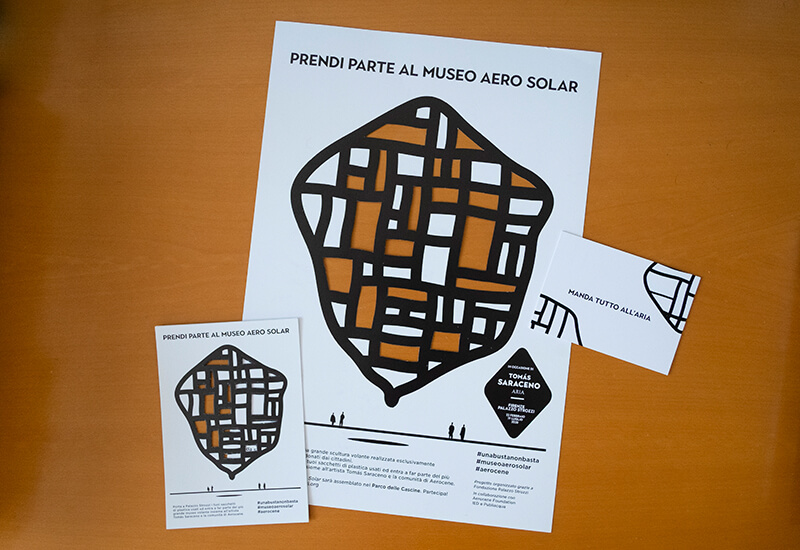 Communication project of Museo Aero Solar and bag collector on display at Palazzo Strozzi
