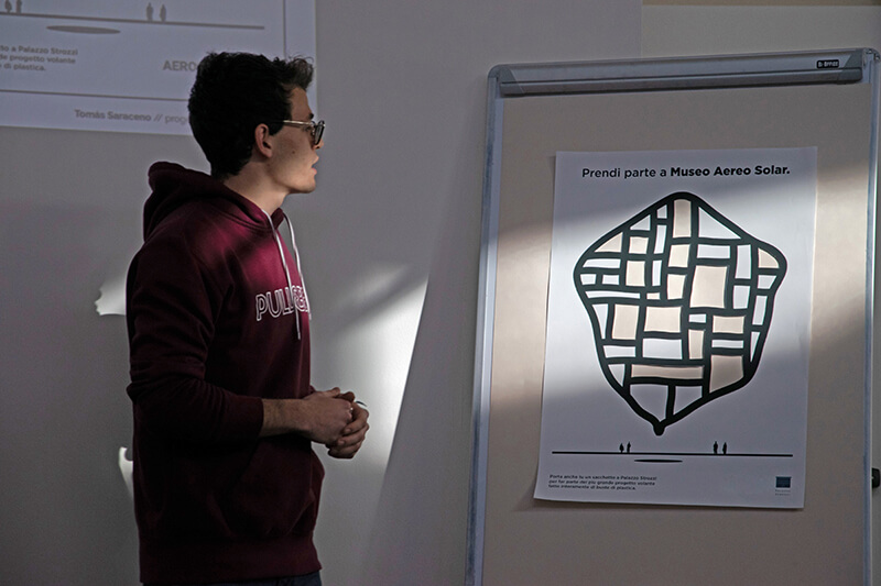The most important thing to do first and foremost was to analyse the identity and characteristics of the Museo Aero Solar in Tomás Saraceno’s own artistic experience. An introductory lecture with the IED students allowed us to address both the project’s conceptual side and its technical requirements. The debate rapidly led us to the crucial question: how were we going to produce an Museo Aero Solar in a city? How should we communicate it? How could we involve people in the various phases?