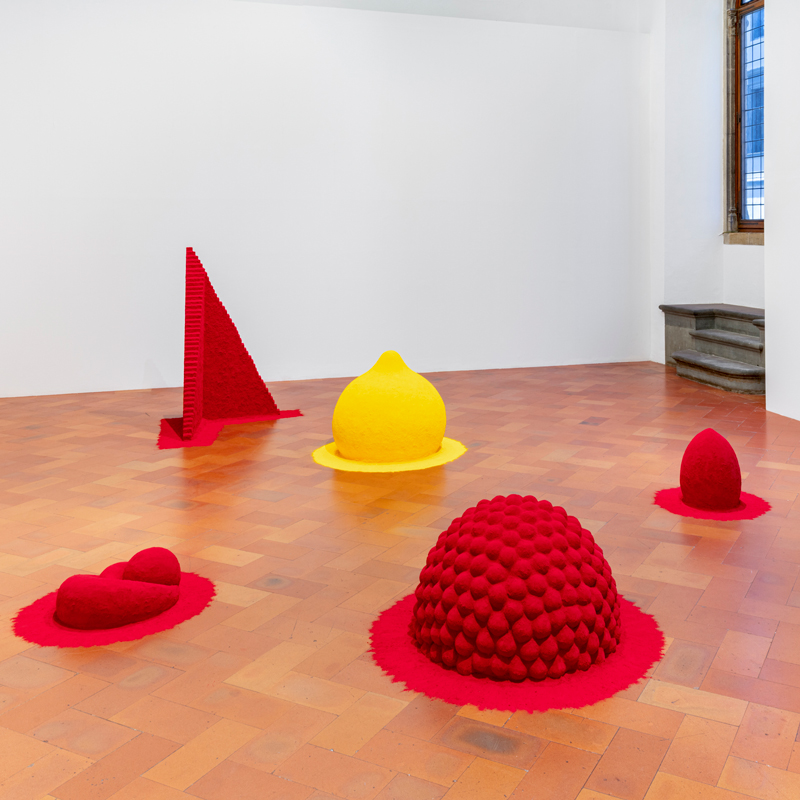 Tale ribaltamento dell’immagine di Firenze, riscritta all’alba della modernità nella materia stessa dei suoi indici illustri, risuona con l’invito a un artista come Anish Kapoor, in città per la prima, grande mostra monografica, concepita tracciandone il cursus in opere più o meno recenti, dalle superfici immateriali di Newborn (2019) al rosso intenso, in assottigliamento perpetuo, dell’istallazione Svayambhu (2007), dai solidi di To Reflect an Intimate Part of the Red (1981) all’organico Tongue Memory (2016).