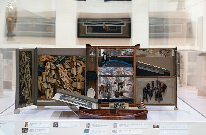 Accanto alle creazioni di Vail e Cornell, quella prima esposizione ad Art of This Century include anche Scatola in una valigia (1941) di Marcel Duchamp, amico e fedele consigliere di Peggy. Questa valigetta da viaggio, che la collezionista porta con sé dall’Europa, raccoglie 69 riproduzioni di opere dell’artista create prima del 1935 e un “originale”. Tra le riproduzioni figurano, ad esempio, La sposa messa a nudo dai suoi scapoli, anche (Il grande vetro) e alcuni dei più celebri ready-made, come una miniatura dell’orinatoio rovesciato, Fontana, del 1917. Simile alla valigetta di un rappresentante, la “scatola” simula perfettamente, e in scala, l’ambiente di una stanza. Realizzata poco prima che Duchamp si trasferisse a New York durante la seconda guerra mondiale, la “scatola” diventa il modo in cui poter conservare in forma simbolica, in una sorta di piccolo museo portatile, una selezione in miniatura dei lavori. Insieme alle opere della collezione di arte cubista, astratta e surrealista della mecenate americana, lo spirito rivoluzionario delle creazioni di Duchamp, come la nozione stessa di ready-made, esercita una grande influenza sulle generazioni a venire degli artisti d’oltreoceano. Nella mostra American Art 1961-2001, tale aspetto emerge ad esempio nelle opere di artisti come Sherrie Levine, con la sua Fountain (1991), Andy Warhol con Campbell’s Tomato Juice Box (1964), Robert Rauschenberg con décor for Minutiae (1954/76), Jasper Johns con Set Elements for Walkaround Time (1968).