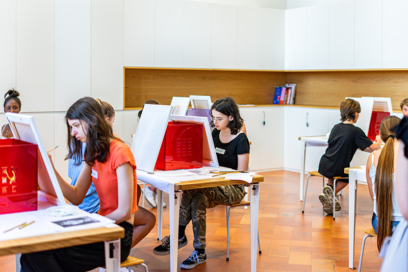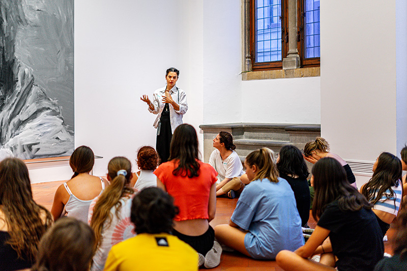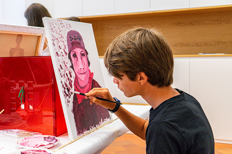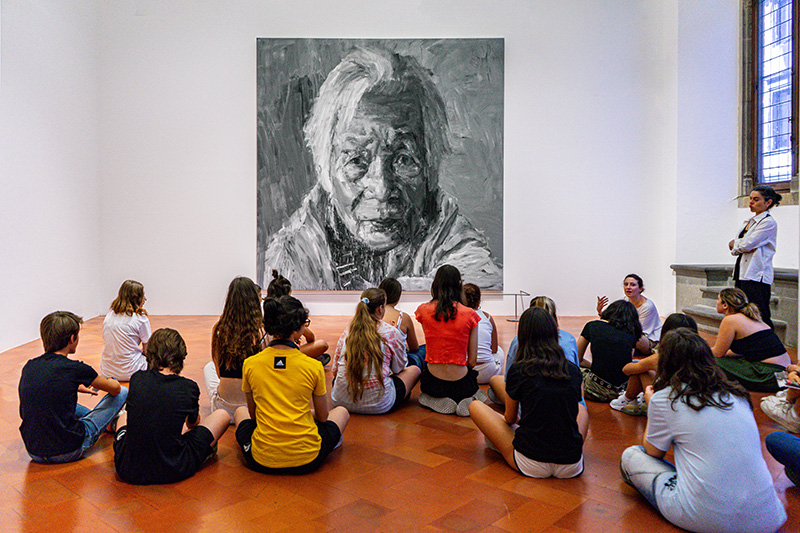 La mostra Yan Pei-Ming. Pittore di storie dedicata al grande artista franco-cinese, è stata l’occasione perfetta per ampliare l’offerta educativa della Fondazione Palazzo Strozzi sperimentando un nuovo formato di laboratorio dedicato agli adolescenti nel periodo estivo. Il progetto Estate in pittura (10-14 luglio 2023), sostenuto dal Gruppo Beyfin S.p.A., ha permesso a più di cento ragazze e ragazzi tra i 13 e i 17 anni di confrontarsi con le grandi tele di Yan Pei-Ming e scoprire in prima persona le possibilità espressive della pittura. Autoritratti, paesaggi notturni, ritratti di famiglia, personaggi storici e animali della tradizione cinese sono stati il panorama visivo di cinque giornate durante le quali si sono alternati momenti di visita nella sale della mostra e momenti di lavoro singolo e collettivo in laboratorio, guidati nell’esperienza da educatori museali e dell’artista Anna Capolupo.