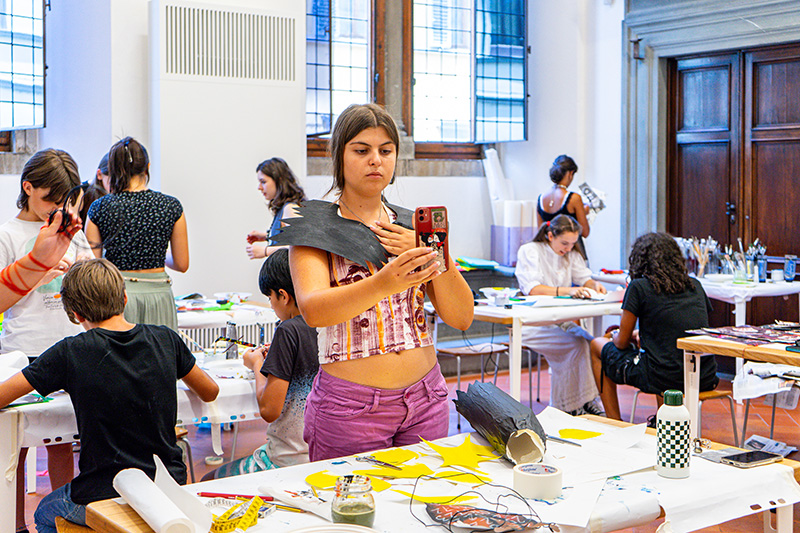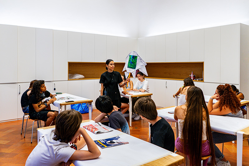 I musei e le scuole dovrebbero essere più vicini nella quotidianità, soprattutto i licei artistici. Nelle scuole servirebbero degli spazi in cui lavorare direttamente con gli artisti, innescare un coinvolgimento più profondo. È quello che manca di più: sentirci vicini agli artisti, alle mostre, osservare le opere dal vero. Questo modello di laboratorio può aiutare molto i ragazzi e permette loro di far emergere aspetti che rimangono sopiti e inesplorati. A scuola lavoriamo per obiettivi e la parte più importante spesso non è la qualità del lavoro, ma la capacità di rimanere aderenti alla traccia. Le modalità che proponi devono essere uguali per tutti, tenendo conto dei limiti fisici degli spazi e delle attrezzature disponibili, inoltre gli studenti devono essere giudicati, pertanto devono presentare un progetto aderente a canoni ben precisi e questo ti richiede di indirizzarli. Tutto questo è molto diverso rispetto a una pratica artistica che si nutre di libertà. La scuola dovrebbe imparare a integrare maggiormente questo aspetto.