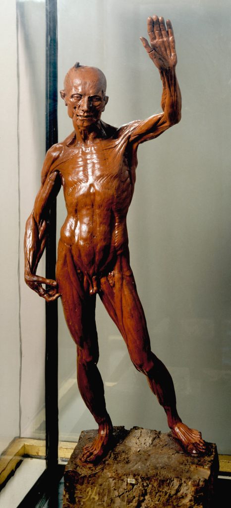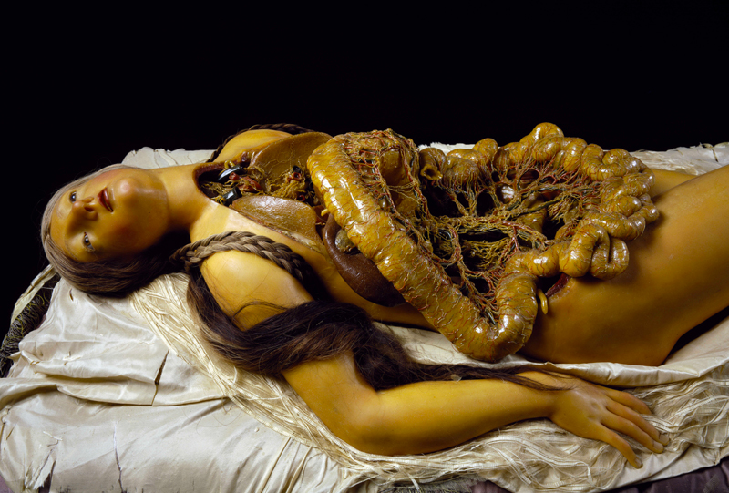La capacità di moto proprio è – lo dice Aristotele – segnale inconfondibile di un essere vivente. Non è però solo il movimento a rendere Svayambhu un discendente del sogno rinascimentale di animazione dell’inanimato. Più di qualsiasi altro mezzo scultoreo, la cera è infatti legata ai processi della vita: nascita, metamorfosi, dissoluzione, rigenerazione. Al tempo stesso calda e fredda, flessibile e solida, amorfa e polimorfa, la cera sovverte l’aspettativa di immutabilità generalmente associata alla scultura. Risponde al nostro tocco, si scalda e modella: reagisce, e quindi è viva; anche nella storia ovidiana di Pigmalione, lo scultore percepisce l’animazione della statua sotto le dita come cera che si ammorbidisce al sole (Ovidio, Metamorfosi, X, 284). L’innata predisposizione al cambiamento, la docilità e l’arrendevolezza, la capacità metamorfica, hanno a lungo assicurato alla cera un posto di riguardo nella produzione artistica occidentale, in particolare come simulacro intero o parziale del corpo umano, soprattutto nei suoi stati di malattia, morte e lacerazione della carne.